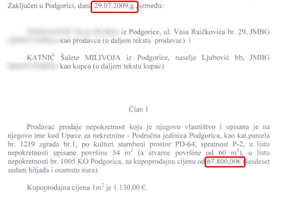 Svega nekoliko mjeseci nakon toga, Katnić je ovaj stan prodao podgoričkoj kompaniji “Glosarij” za 96.000 hiljada eura.