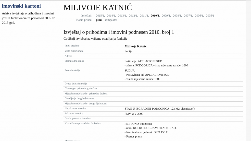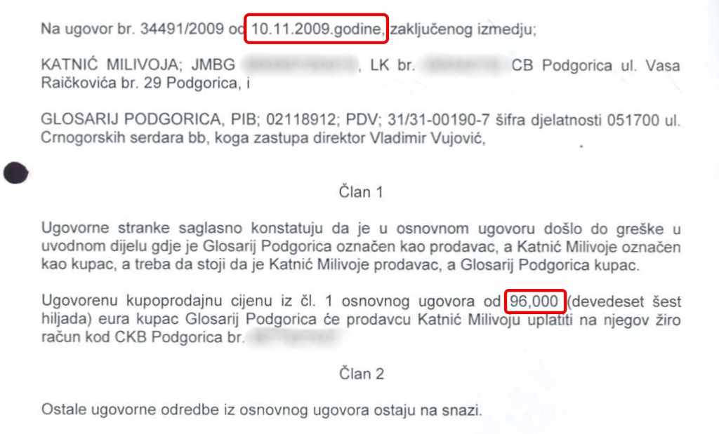 Međutim, u imovinskom kartonu Milivoja Katnića koji je u to vrijeme bio sudija Apelacionog suda nema podataka o ovim transakcijama. Ugovor o prodaji stana, Katnić je potpisao sa tadašnjim vlasnikom Glosarija, Vladimirom Vujovićem.