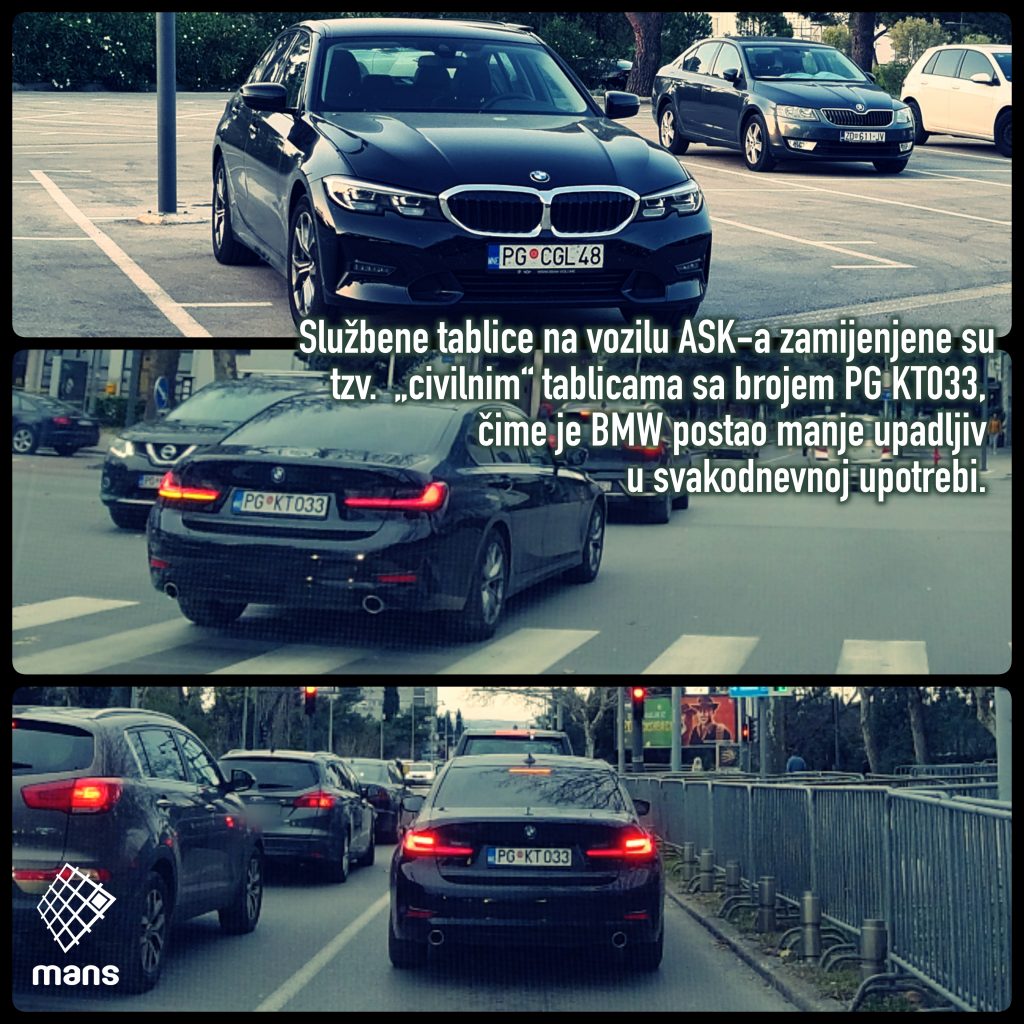 Istraživački centar MANS-a je otkrio da je direktorica ASK-a donijela nezakonitu odluku o raspolaganju voznim parkom te institucije na način što je sebi i svojoj pomoćnici dodijelila na stalno korišćenje (24 sata) dva putnička vozila koja su u vlasništvu Agencije.